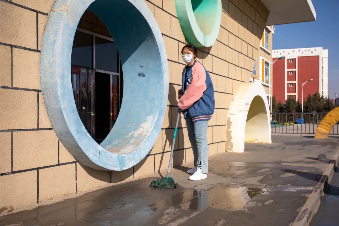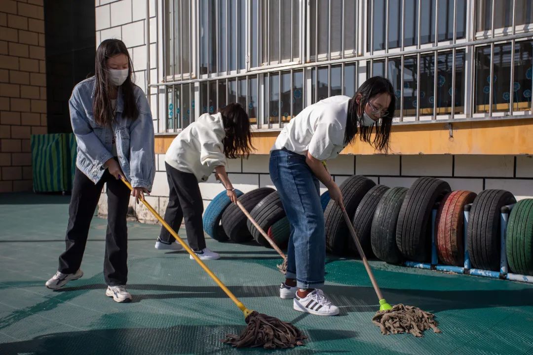 计科青年们主动对幼儿园设施及周边环境卫生进行清理,凭借着自身的点滴劳动,低头俯身、挥洒汗水,用自己的双手带走灰尘与垃圾,为幼儿园增加一份干净与整洁。一上午的劳动虽然很快结束,但是劳动的汗水早已浇灌下了爱与希望的种子。