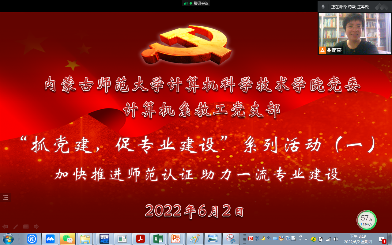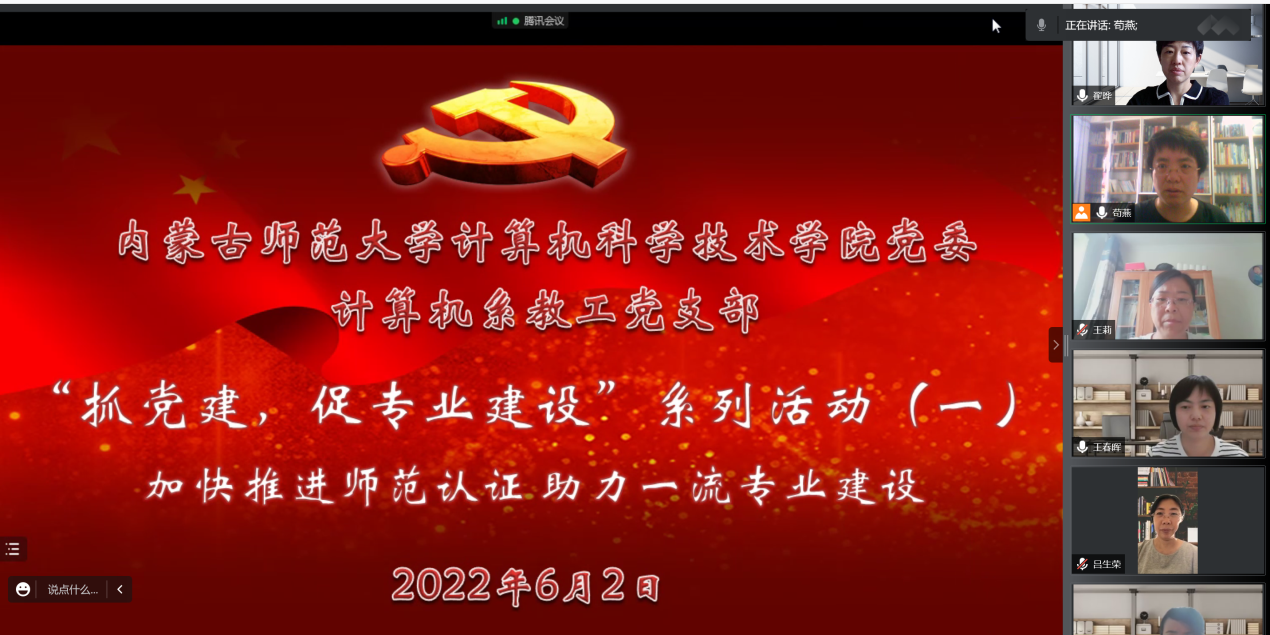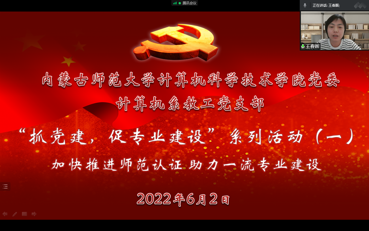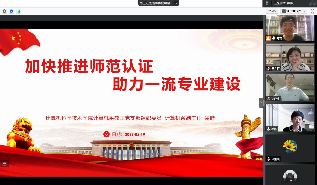 会上,计算机系党支部组织委员、计算机系副主任翟晔围绕今年会官网师范认证工作了详细汇报。首先回顾了今年会官网师范认证的前期准备工作、汇报了目前今年会官网师范认证的进展情况并介绍了下一步的工作计划,最后强调了师范认证作为今年会官网今年的头等要务,需要每一位老师的鼎力支持和全力配合。汇报之后,老师们和系主任围绕师范认证的重要性和目前存在的困难进行了激烈的讨论和交流,大家纷纷表示愿意为了攻克师范认证这个重任贡献自己的一份力量。