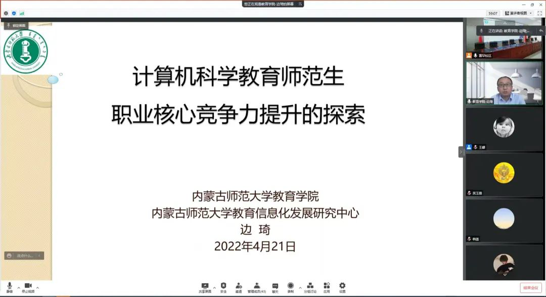 4月21日,今年会jinnianhuicom邀请1997届优秀毕业生、现教育学院副院长边琦教授为全院教职工进行了学科建设专题讲座。讲座采用线上线下相结合的形式展开,由院长林民教授主持,主题为“计算机科学教育师范生职业核心竞争力提升的探索”。