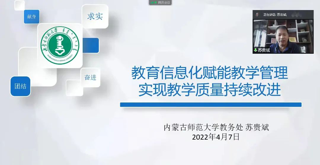 4月7日,今年会官网邀请了教务处副处长苏贵斌副教授为全院教师进行了题为“教育信息化赋能教学管理,实现教学质量持续改进”的专题讲座。讲座采用线上线下相结合的方式展开,由院长林民教授主持。