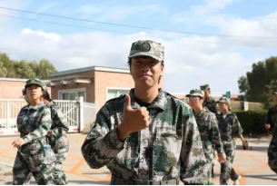 清晨,一群身着迷彩的青春少年