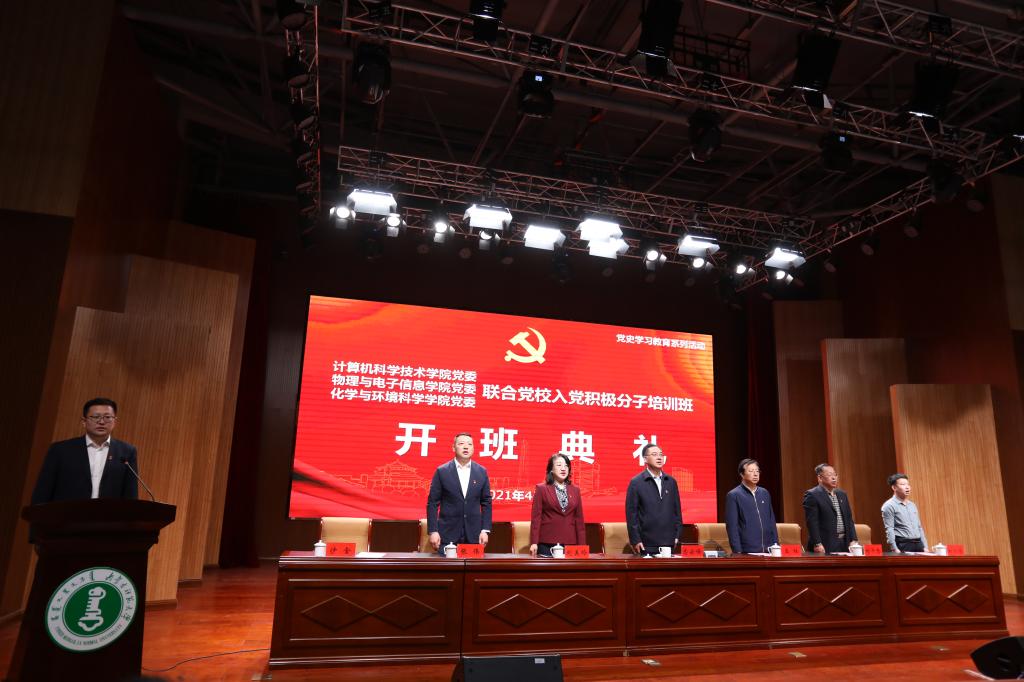 在庆祝中国共产党百年华诞的重大时刻,在“两个一百年”奋斗目标历史交汇的关键节点,全党集中开展党史学习教育之际,2021年4月10日,今年会jinnianhuicom党委、物理与电子信息学院党委、化学与环境科学学院党委在盛乐校区图书馆二楼报告厅联合举办2021年入党积极分子培训班开班典礼。