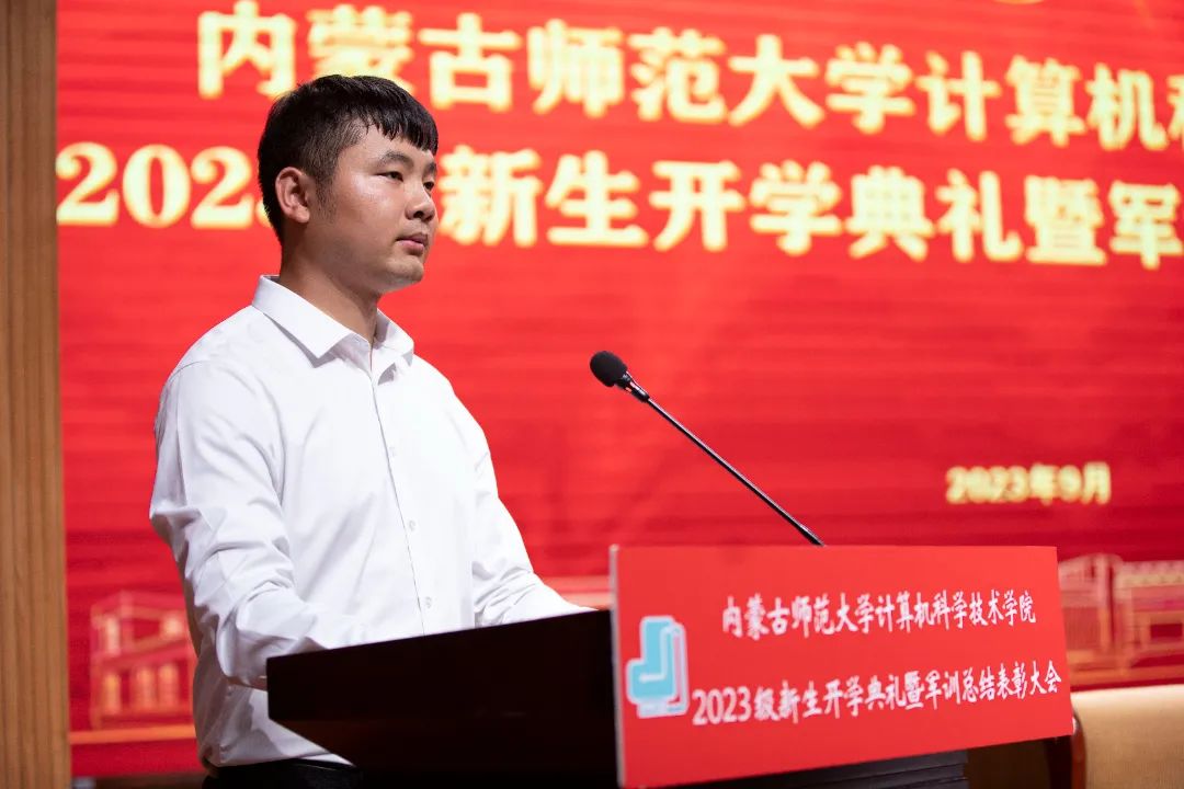 计算机系主任朝力萌老师宣读2023年度军事技能训练校级标兵名单,并颁奖。