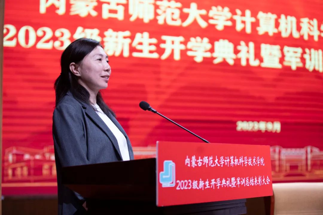 数据科学与人工智能系副主任包萨仁娜老师宣读2023年度军事技能训练院级标兵名单,并颁奖。