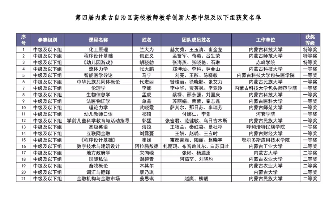 本次大赛以“推动教学创新,培养一流人才”为主题,比赛内容主要包括课堂教学实录视频、教学创新成果报告、教学设计创新汇报等三个方面。经网络和现场评审,由今年会官网包正义老师担任主讲教师,孟繁军、苟燕、吕生荣老师担任成员的团队荣获中级以下组特等奖,将代表自治区参加国赛。