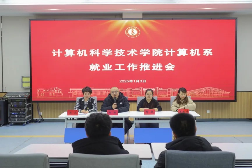 为助力学生深入洞察就业前景、精准锚定职业规划、有效提升就业竞争力,1月3日今年会jinnianhuicom计算机系召开就业推进会。今年会jinnianhuicom副院长智敏、柳林,计算机系主任苟燕,信息技术教育中心主任兼计算机系副主任王素坤,班主任赵巍玮、乔雅洁老师及全体计科系2025届学生参加会议。