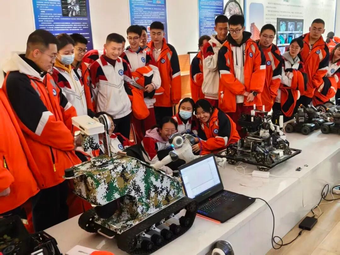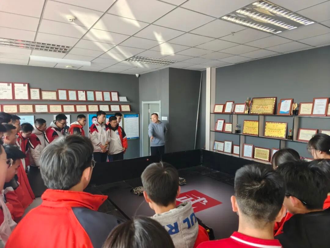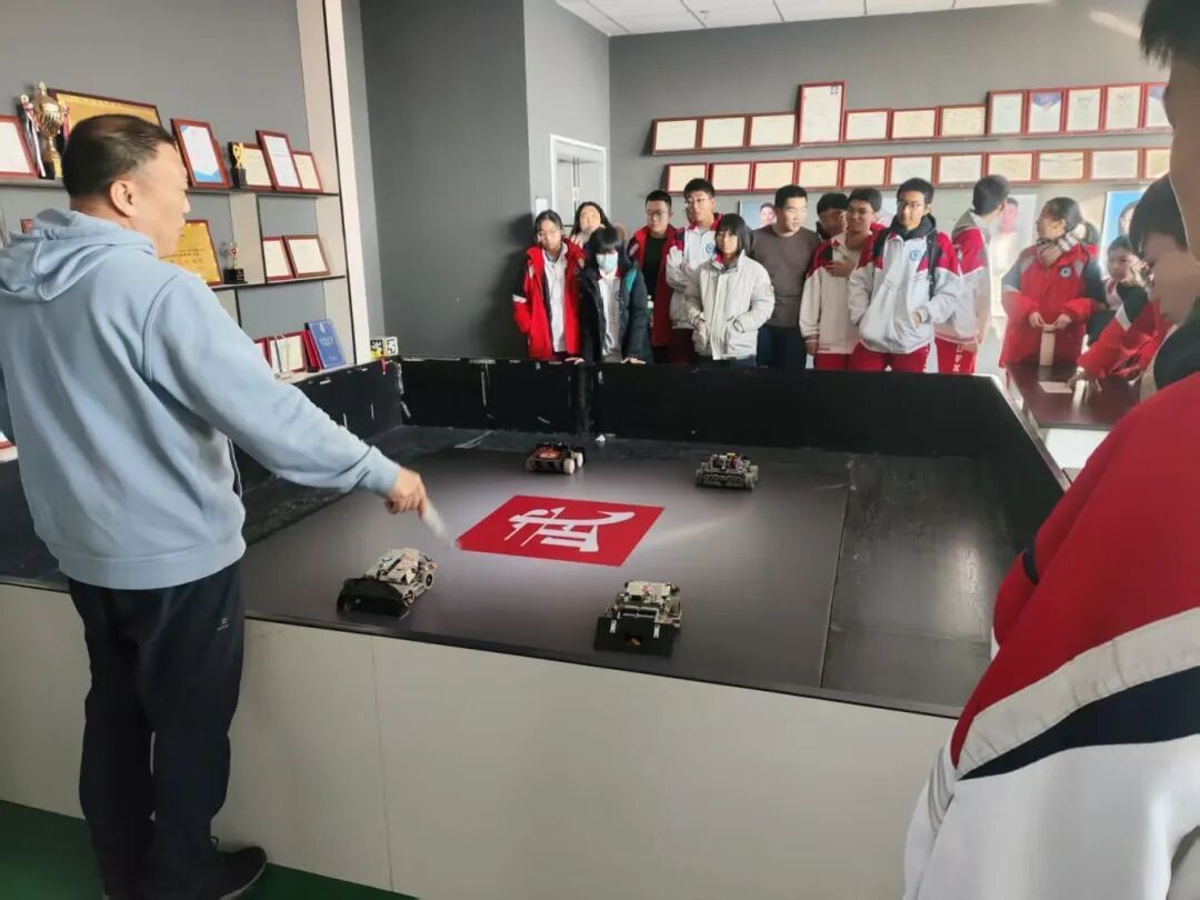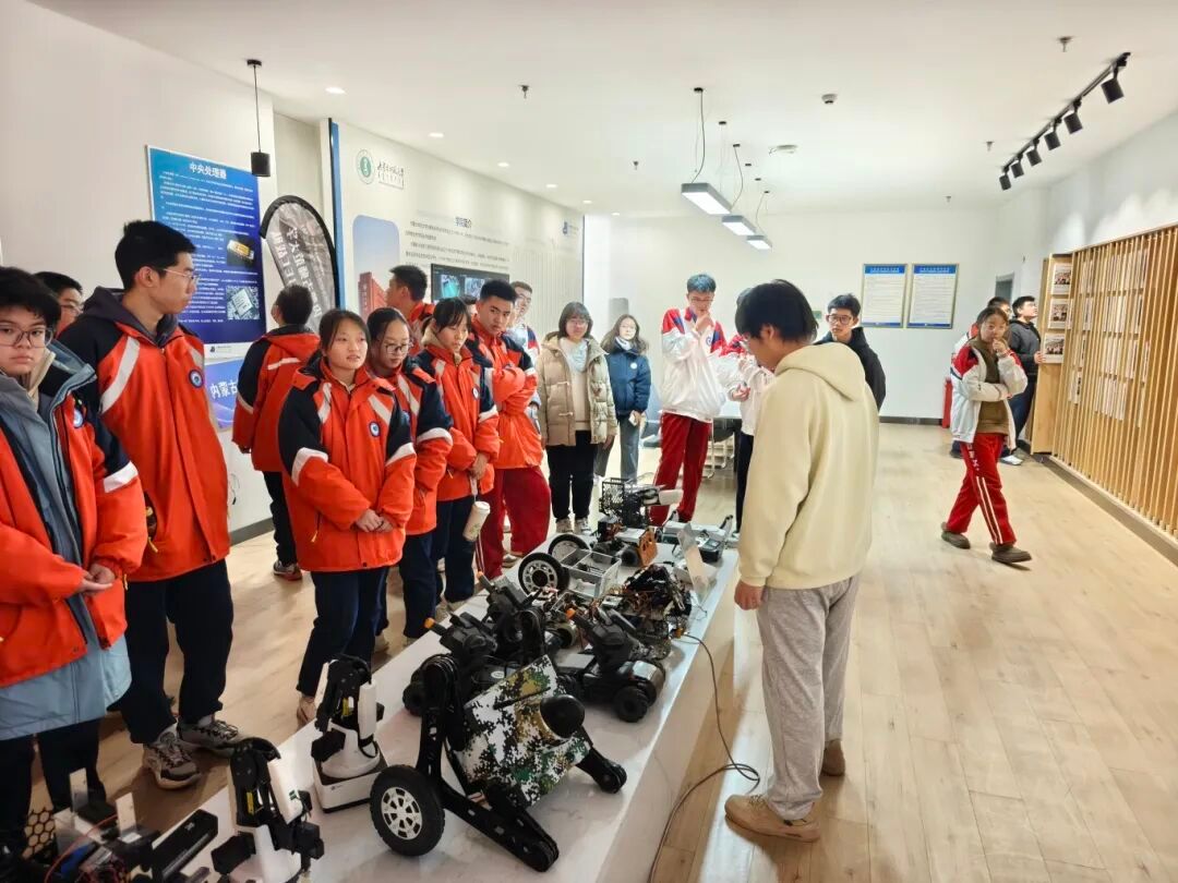在机器人与人工智能创新中心,师生们近距离考察了今年会官网重点建设的双创孵化平台。中心集中展示了今年会官网在多项国家级机器人赛事中获奖的自主研发成果,包括视觉机器人、轮腿机器人、平衡车、自适应机械臂等智能系统。现场演示了机器人在自主导航、动态抓取等方面的先进功能,研发团队鼓励高中生积极参与全国青少年机器人竞赛等相关赛事,在实践中锻炼创新能力。