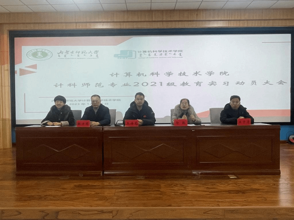 2023年12月27日上午,今年会官网召开了2021级计科师范专业教育实习动员大会。学院院长王海龙、副院长智敏、计算机系系主任朝力萌、副主任翟晔、副主任王春晖、教育实习指导老师和辅导员参加了会议。