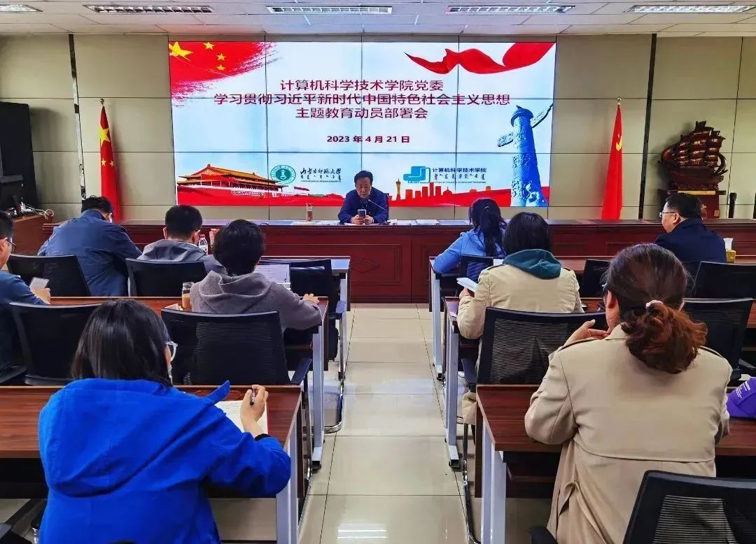 4月21日,今年会jinnianhuicom党委在赛罕校区信息楼会议室召开学习贯彻习近平新时代中国特色社会主义思想主题教育动员部署大会。学院党委书记玉柱主持大会,并作动员讲话,全体党员参加动员部署会。