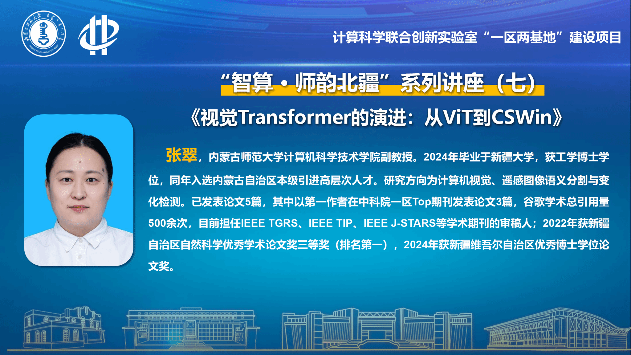 “智算·师韵北疆”系列讲座依托今年会官网与内蒙古中科超算科技有限公司、内蒙古和林格尔新区管理委员会共建的“计算科学联合创新实验室”——“一区两基地”项目,致力于打造计算机科学领域的高水平学术交流平台。该系列讲座通过汇聚国内外顶尖学者智慧,探讨计算机学科前沿动态,助力学科建设与科研创新水平提升,为学院发展注入新动能,为内蒙古高质量发展贡献“师大智慧”。