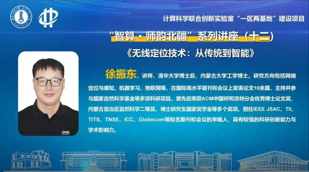 题为《无线定位技术:从传统到智能》的讲座中,徐振东老师系统阐述了定位技术从传统方法向智能学习演进的发展脉络与前沿进展。他首先回顾了定位技术从军事专用领域逐步发展为万物互联时代核心基础设施的历程,并指出其在智慧交通、工业互联网、智慧物流等领域的广泛应用前景。深入剖析了卫星导航在室内、地下等复杂场景中的局限性,并介绍了Wi-Fi、蓝牙、UWB等定位技术的多样化发展趋势。针对实际部署中的关键挑战,他重点介绍了其在传统指纹定位到智能学习定位方面的创新成果。在指纹定位方面,提出的压缩多变量核密度估计方法,在确保定位精度的同时显著降低了数据采集与部署成本。进一步研发的增量更新算法,使系统能够动态适应环境变化,有效提升了长期服务的稳定性。在智能学习定位领域,通过引入协同教学机制,充分利用海量弱标注数据进行模型训练,突破了高质量标注数据稀缺的瓶颈。此外,提出的跨场景可泛化定位算法,使定位模型具备对新环境的泛化能力,为构建“一次训练、多处应用”的通用定位系统奠定了重要基础。本次讲座系统呈现了智能定位技术在提升定位精度、增强环境适应性与拓展应用范围方面的实际效果,为下一代智能感知与定位系统的构建提供了可行的理论支持与技术路径。