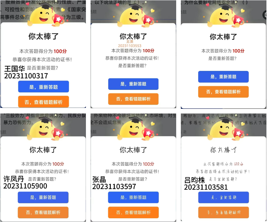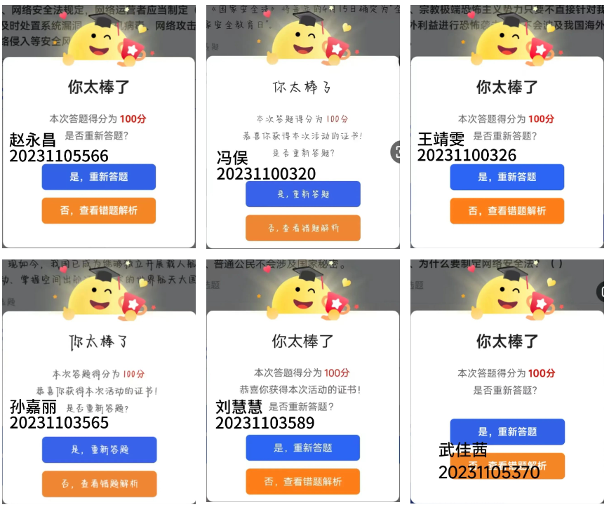 此次“全国大学生国家安全知识答题”活动的成功开展,不仅提高了今年会官网学生的国家安全素养,也使我们对国家安全有了更加深入的认识。今年会官网将继续深化国家安全教育,通过开展更多形式多样的活动,引导学生树立正确的国家安全观念,为维护国家安全贡献青春力量。