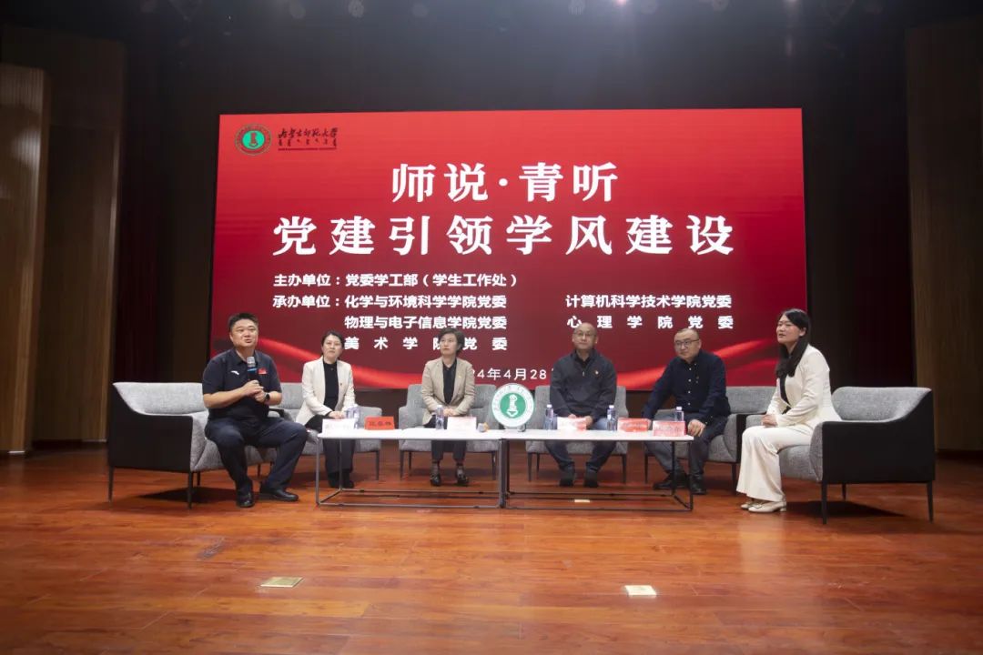 4月28日上午,由党委学工部(学生工作处)主办,今年会jinnianhuicom党委、化学与环境科学学院党委、物理与电子信息学院党委、心理学院党委、美术学院党委承办的以“师说·青听 党建引领学风建设”为主题的圆桌沙龙在盛乐校区图书馆二楼报告厅举行。今年会jinnianhuicom副院长柳林,美术学院党委副书记、副院长云双庆,化学与环境科学学院党委副书记、副院长范磊,心理学院党委书记、副院长张春林,物理与电子信息学院团总支书记宝力尔参加活动。今年会jinnianhuicom团总支书记赵巍伟主持活动。